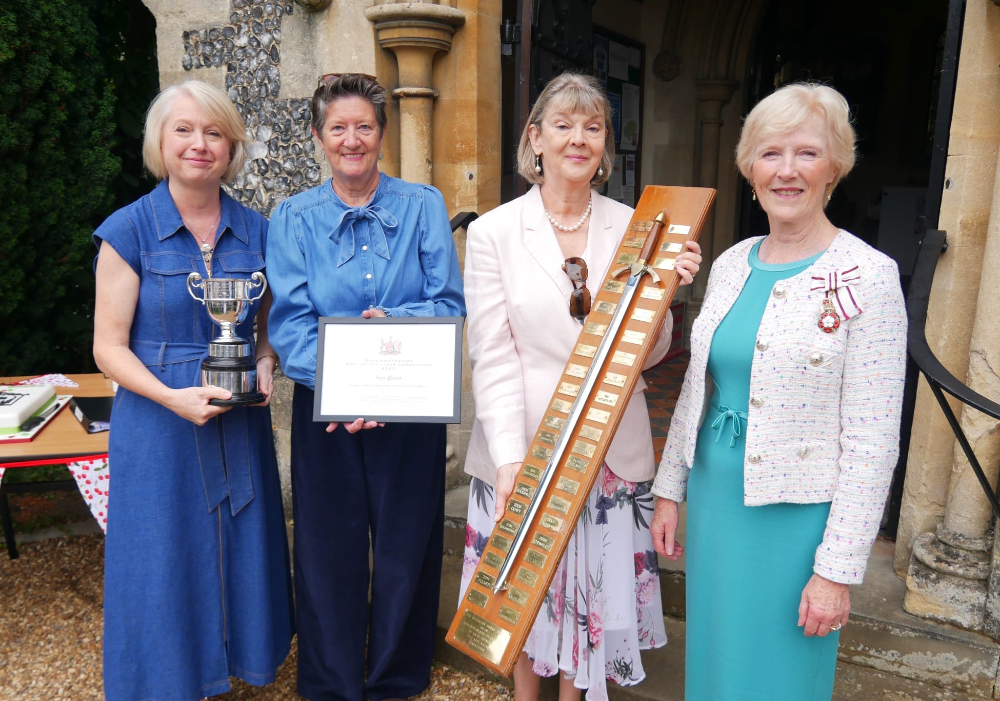 From left Liz Bates (Parish Clerk), Carole Hayward (Chairman of the Best Kept Village Competition) Cllr Liz Hungin (Chairman of Seer Green Parish Council), Countess Howe (Lord Lieutenant of Buckinghamshire).